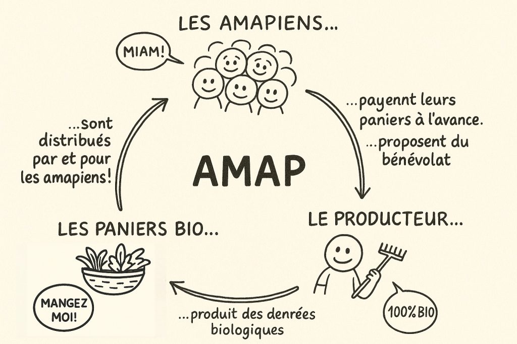 Pour fonctionner, chaque membre de l’association y est adhérent, et peut, s’il le souhaite, réserver des paniers de légumes d’un trimestre sur l’autre. Chaque adhérent a également accès à l’ensemble des produits des producteurs partenaires de l’association.